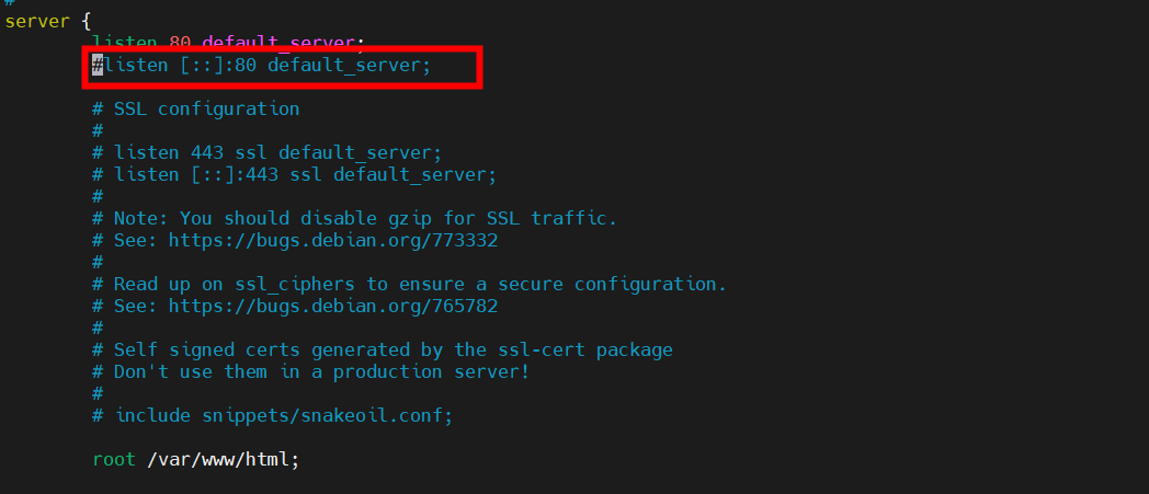 Nginx 설정 파일에서 다음과 같이 해당 부분을 주석 처리한 후 Nginx을 재시작합니다.
