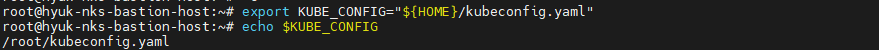 kubeconfig를 환경 변수에 설정하여 환경 변수를 이용하여 조회할 수 있게 끔 설정합니다. 저는 현재 kubeconfig.yaml 파일이 해당 경로에 있기 때문에 다음과 같이 설정하였습니다.