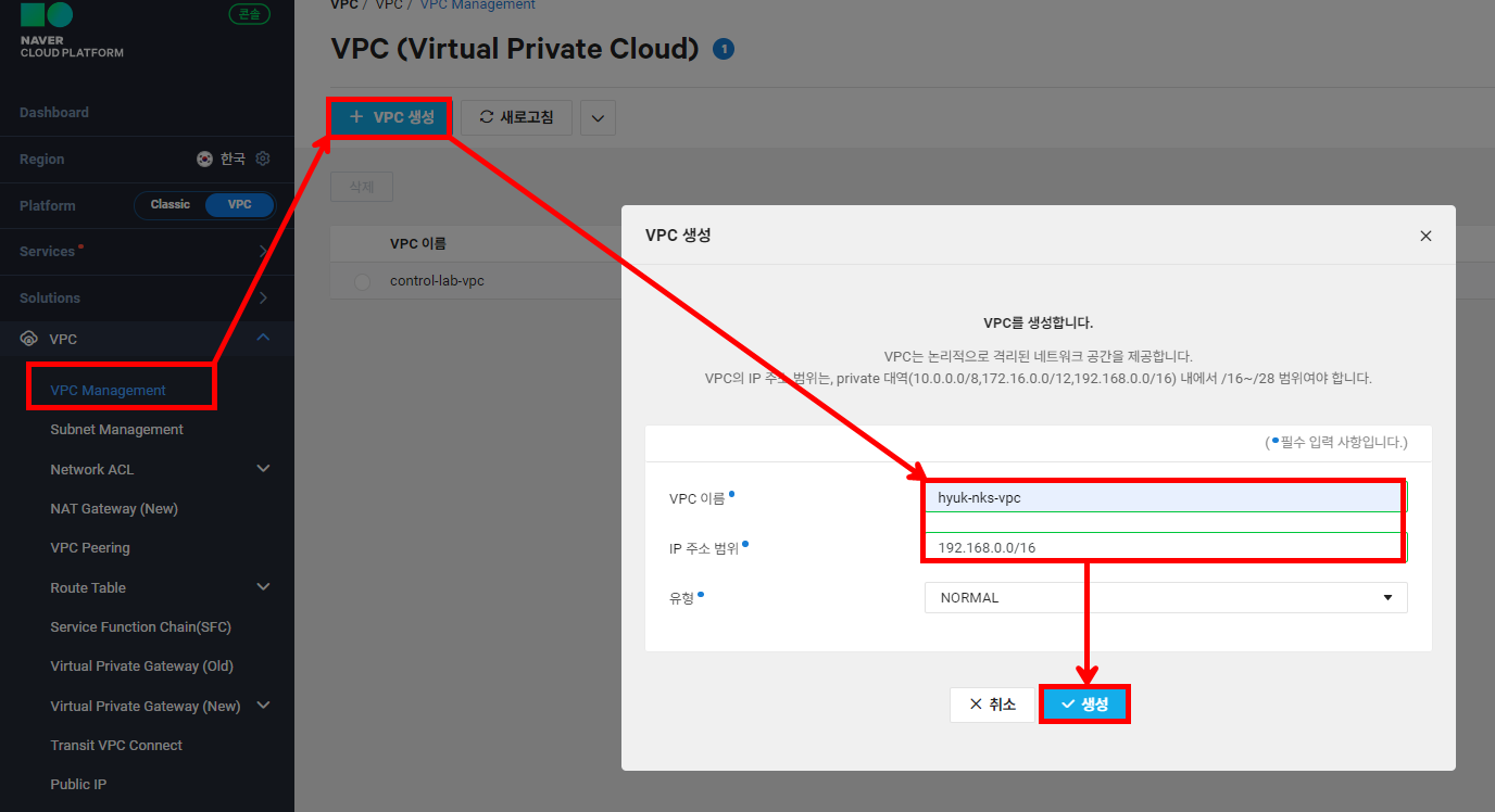| hyuk-nks-vpc | 192.168.0.0/16 |
