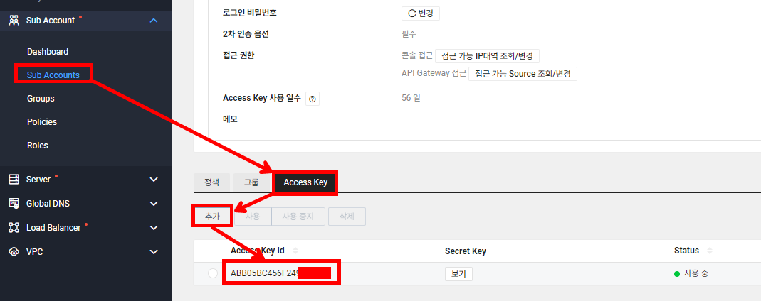 콘솔에서 API키를 확인한 후에 Ncloud CLI 자격증명으로 설정합니다.