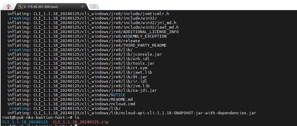 Bastion 서버로 전달받은 CLI 파일을 압축 해제합니다.