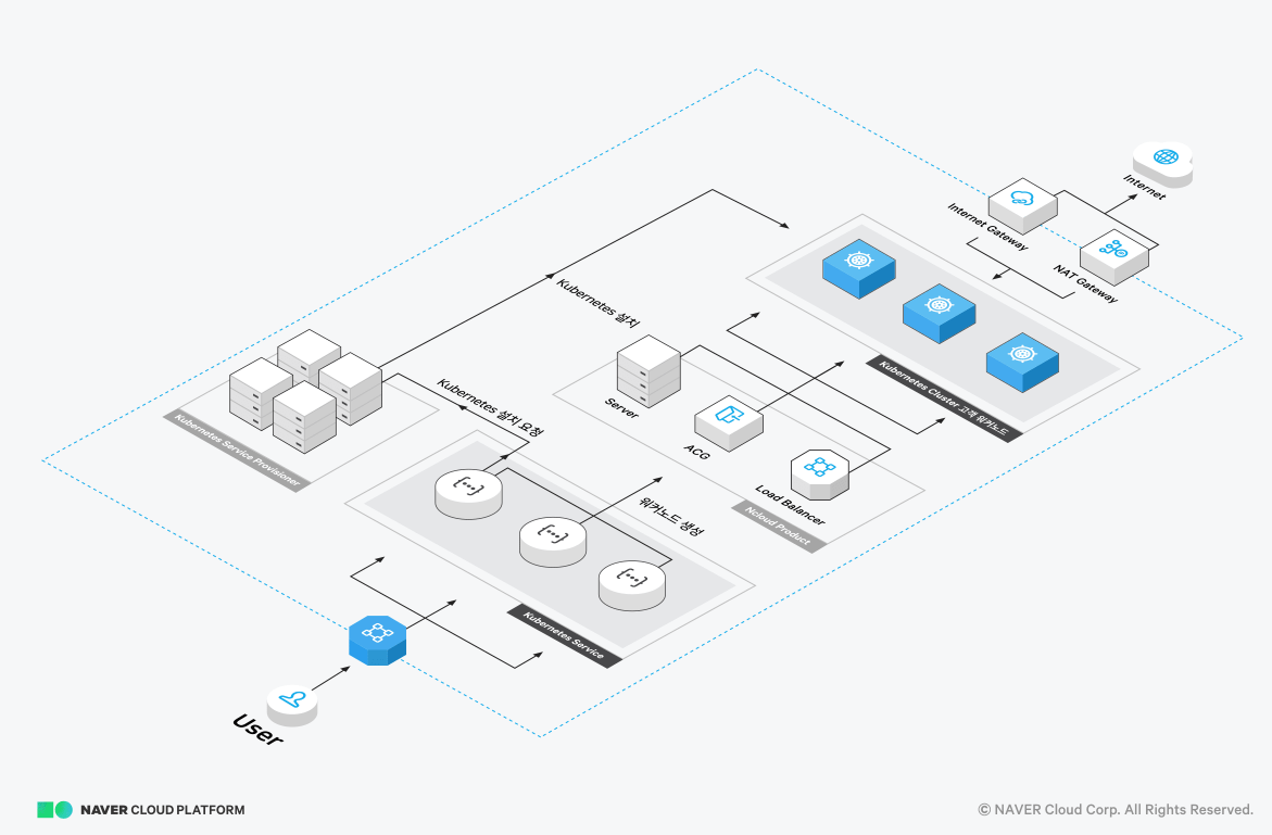 Ncloud Kubernetes Service에서는 복잡하고 반복적인 클러스터 설정 작업이 간소화되며, 이를 통해 클러스터를 구축하고 운영 유지하는 데 드는 시간을 절약할 수 있습니다.