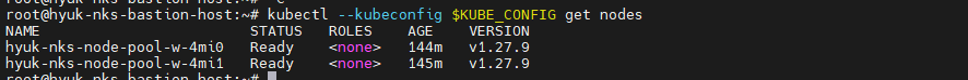 다음과 같이 정상적으로 ncp-iam-authenticator와 ncloud cli를 이용하여 노드 정보를 가져올 수 있는 것을 확인할 수 있습니다.