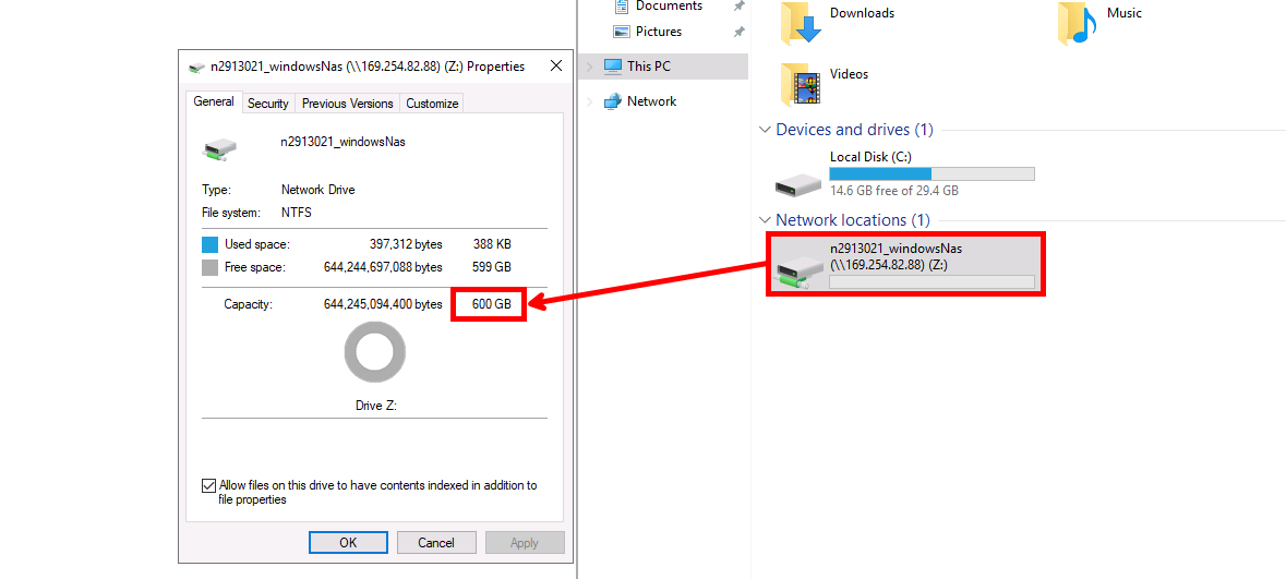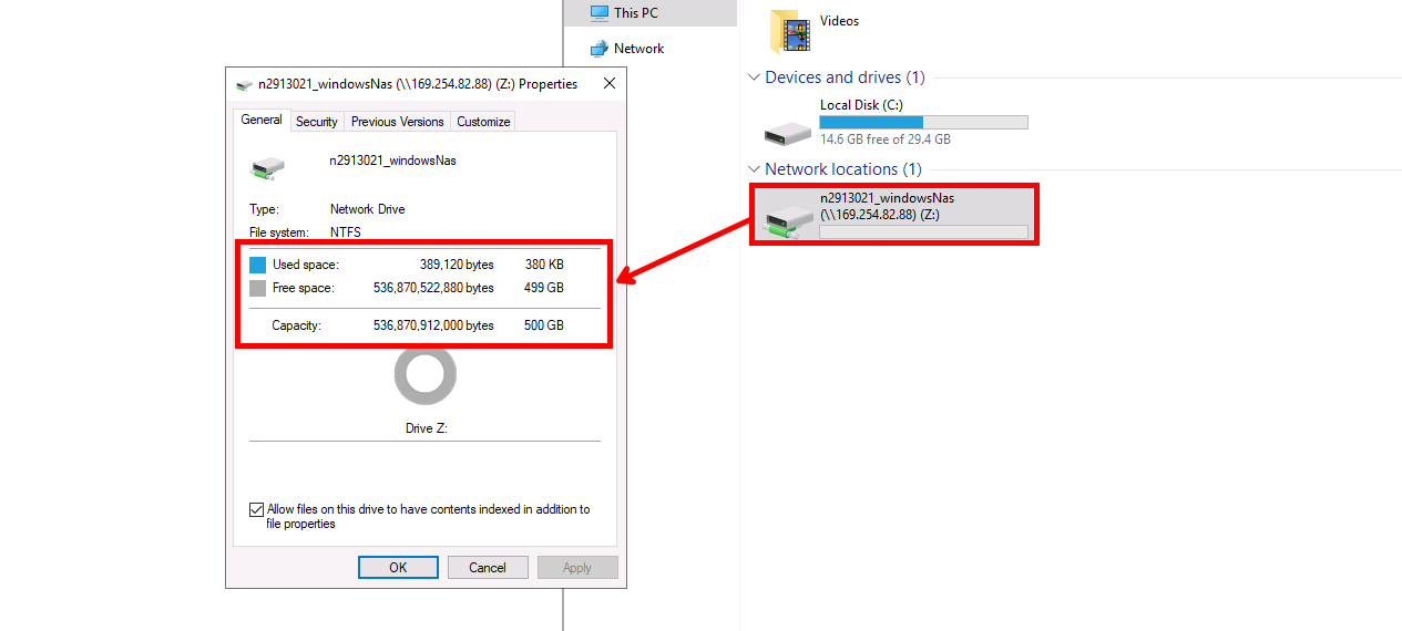 생성 시 설정했던 500GB의 공간을 가지고 있는 NAS 스토리지가 생성된 모습입니다.