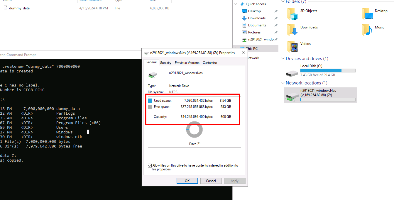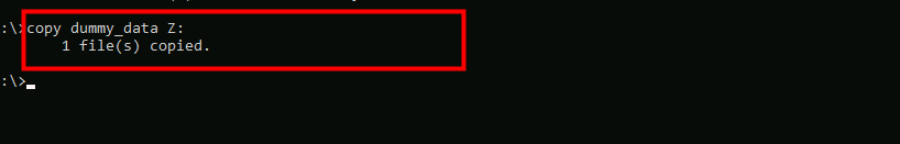 C: 드라이브 바로 아래 있는 dummy_data 파일을 Z: 드라이브(NFS)로 복사합니다.