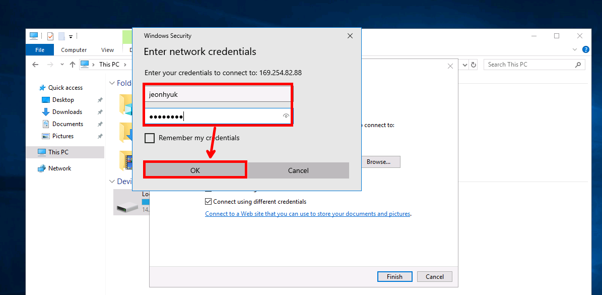 | 4. Connect using different credentials | 네트워크 드라이브 연결 시 CIFS 볼륨의 인증 정보 입력을 요청 |