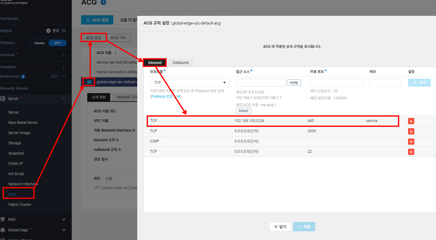 (6) ACG 설정하기 (Samba Port: 445)