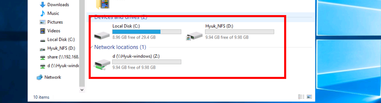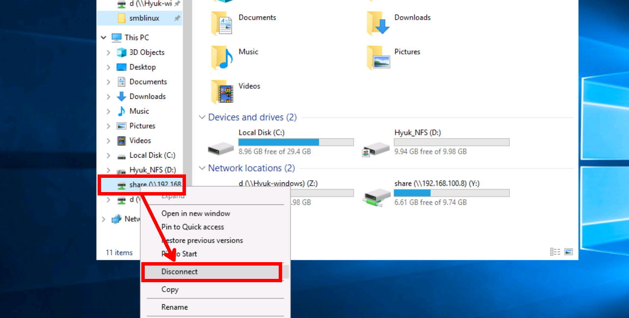 [share] - [Disconnect]로 Windows 서버에서 마운트 해제해 주시면 됩니다.