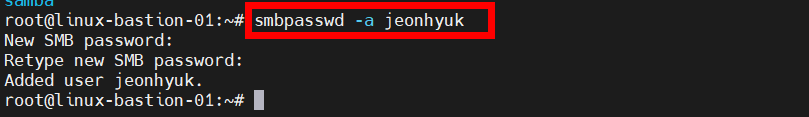smbpasswd -a jeonhyuk