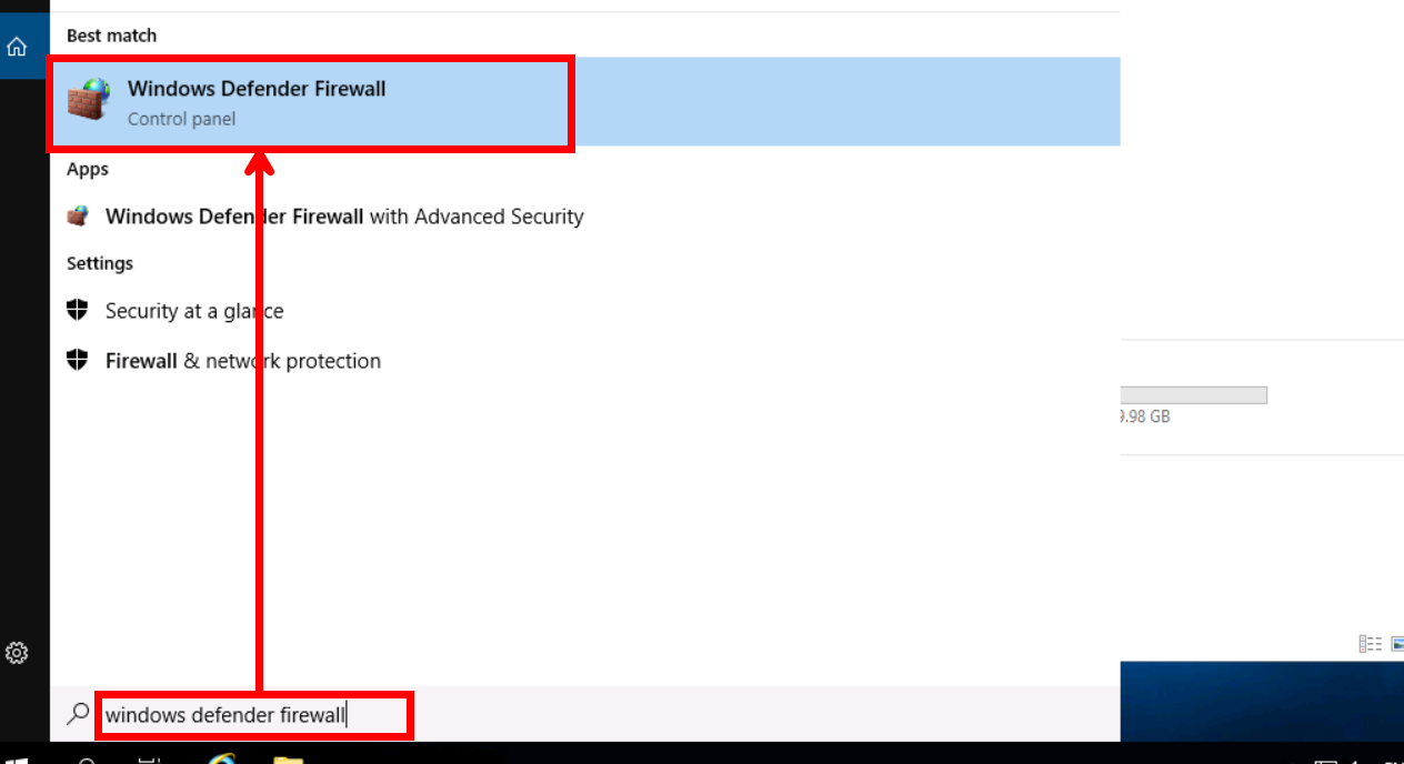 윈도우 검색 창에 [Windows Defender Firewall]을 검색하신 후 선택합니다.