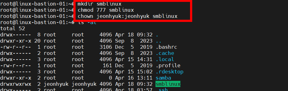 chown jeonhyuk:jeonhyuk smblinux