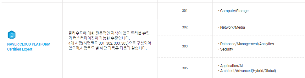 개인적인 난이도는 302 > 301 > 303 > 305 순서입니다. 기본적으로 네이버 클라우드에 관심이 있고 실습을 많이 해보신 분이라면 쉽게 푸실 수 있을 것 같고 처음 접하시거나 공부한 지 얼마 되지 않았다면 꼼꼼하게 읽어보고 가시는 것을 추천드립니다. 아니면 처음부터 NCE를 도전하시는 분이라면 네이버 클라우드 문제 유형을 몰라서 어렵게 느껴질 수 있습니다. 다른 자격증 시험으로 한 번 경험해 보시는 것을 추천드립니다.