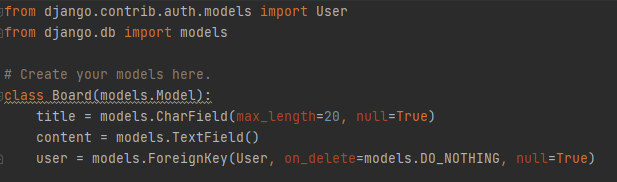 다음은 게시판(Board) 모델을 정의하는 코드입니다.