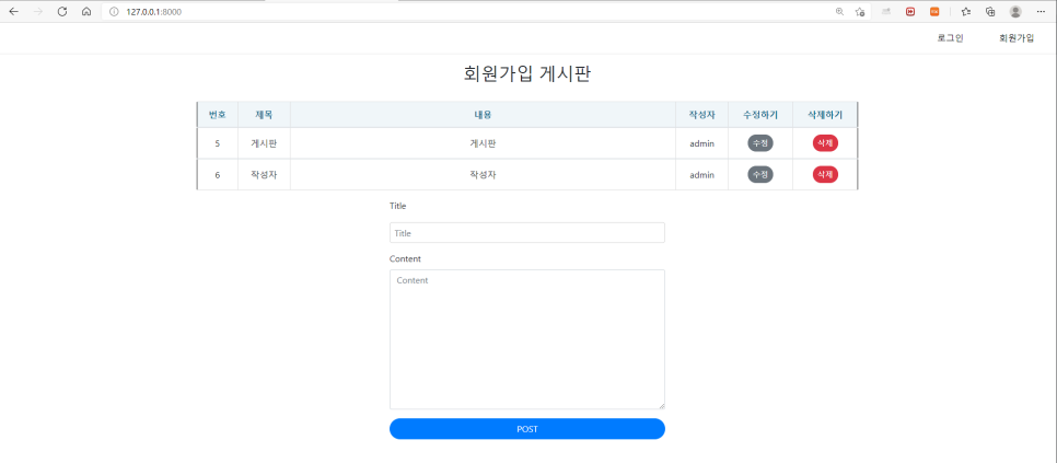 게시판 구현하기(1)(2)에서 게시판을 구현했는데 이번 시간에는 게시판에 회원가입 기능을 추가하는 실습을 진행하겠습니다.