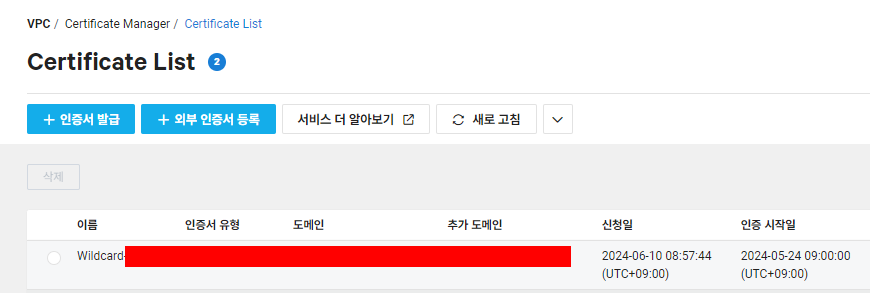 Security Monitoring WAF에는 현재 콘솔로 인증서를 등록할 수 없기 때문에 Certificate Manager는 Load Balancer와 CDN 상품에 연동이 가능합니다.