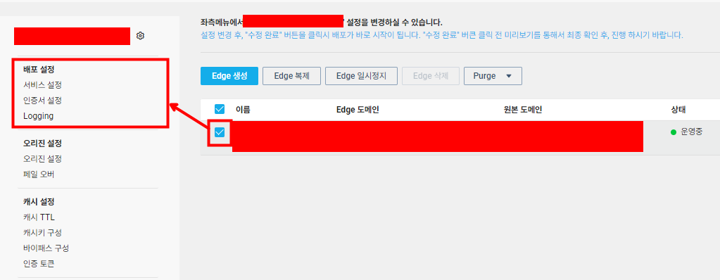 인증서 업데이트가 필요한 Edge를 선택한 후 좌측에 [배포 설정]을 선택해 줍니다.