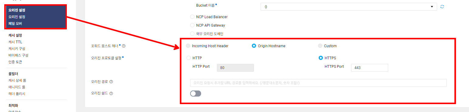 현재 Global Edge를 보면 서비스 프로토콜로 [HTTP and HTTPS] 두 개의 프로토콜로 모두 동작합니다. 하지만 오리진 설정에서 오리진 프로토콜은 반드시 HTTP 또는 HTTPS로 보내게 되어 있습니다.