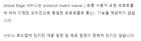 마지막으로 Global Edge의 개발 로드맵을 보면 Match Protocol 기능 지원에 대한 내용이 담겨 있습니다. 개발 과정에서 우선순위에서 밀려서 해당 기능이 구현되지는 않았지만 Global Edge 담당 개발자분들도 해당 내용을 고려하고 있다고 하니 시간이 지나면 해당 기능을 사용할 수 있을 것으로 생각됩니다.