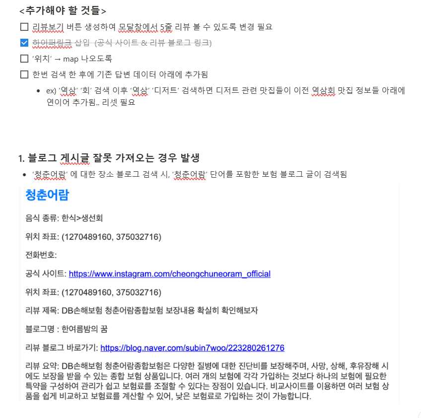 - 추가 개선 사항 및 오류 개선 필요한 사항 작성