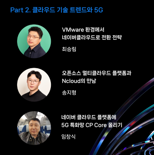 Part 2에서는 클라우드 기술 트렌드와 5G라는 큰 틀에서 기술 경험과 팁을 공유해 주셨습니다.