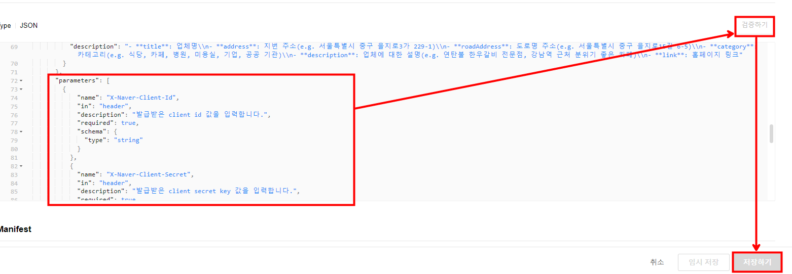 API Spec 작성 방법과 Manifest 작성 방법에 대한 자세한 설명은 스킬(https://guide.ncloud-docs.com/docs/clovastudio-skill)을 참조해 주십시오.