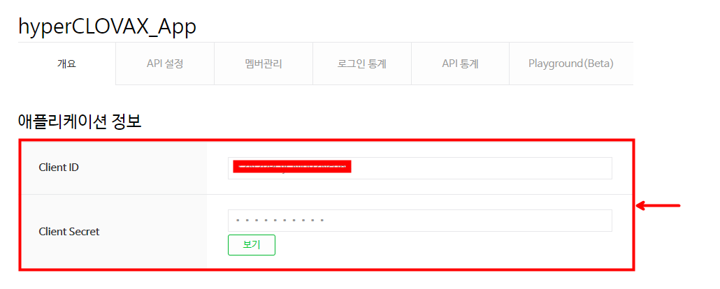 2. API 호출 시 클라이언트 아이디와 클라이언트 시크릿 정보를 확인