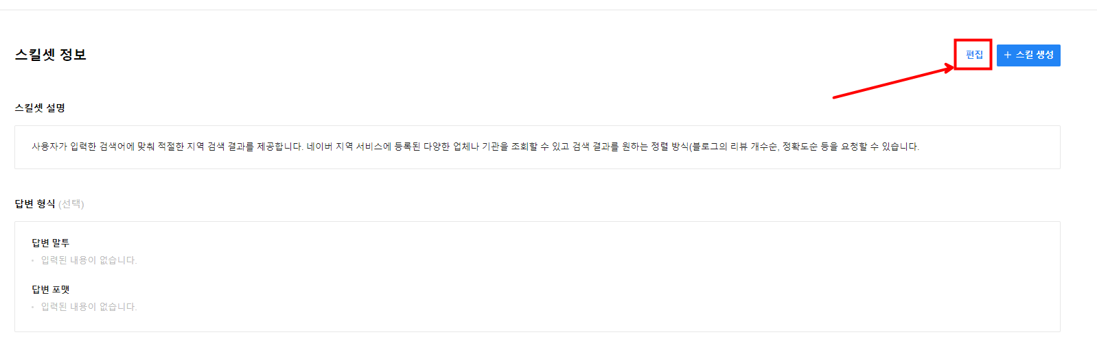 스킬셋 정보 페이지에서 [편집]을 누르면 답변 형식을 수정할 수 있습니다.