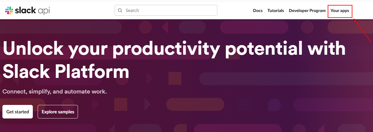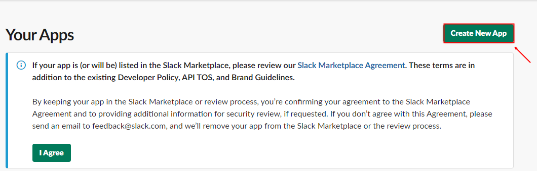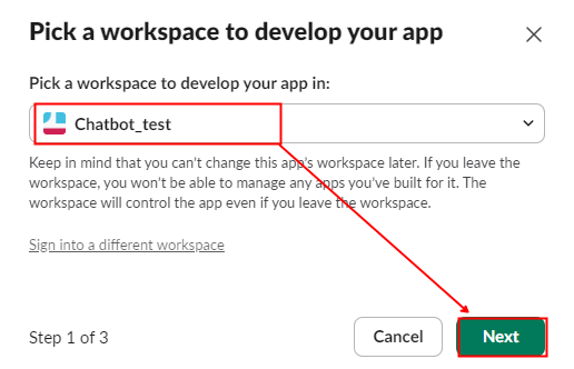 다음과 같이 Slack API에 접속하여 내 워크스페이스에 새로운 앱을 생성합니다.