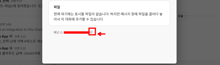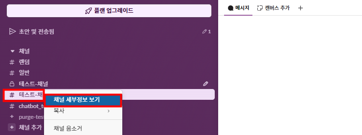 테스트 채널 우클릭 - [채널 세부정보 보기] - 채널 ID 복사합니다.