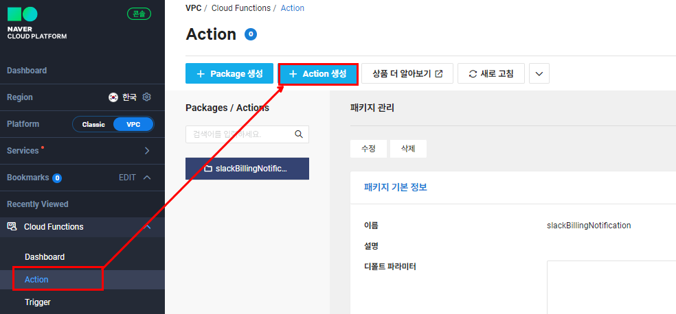 Action을 생성하기 전에 Package를 먼저 생성합니다.