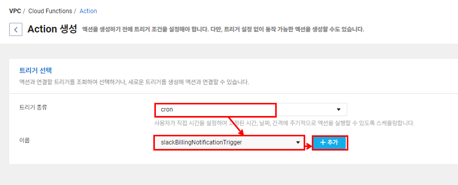 다음과 같이 트리거를 선택한 후 [추가]를 선택합니다.