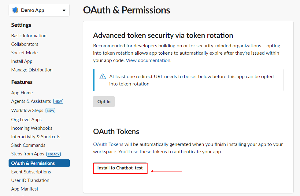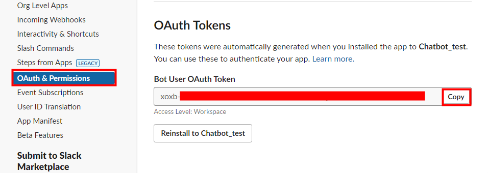 OAuth & Permissions에서 Bot Token을 복사합니다.
