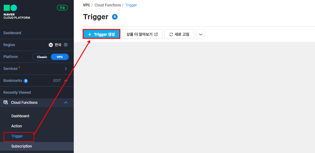Cloud Functions - [Trigger 생성]을 선택합니다.