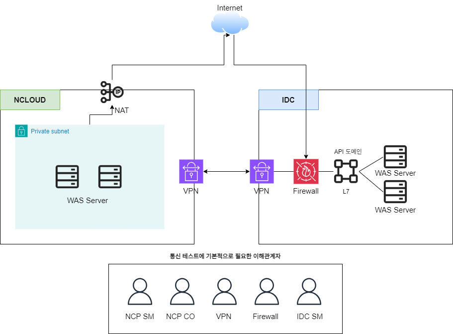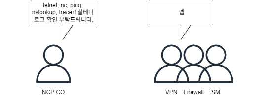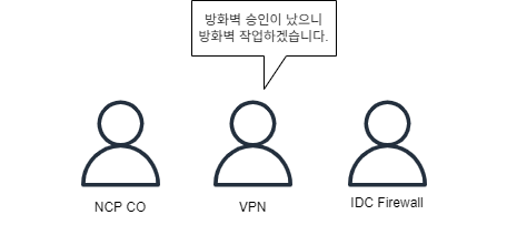 하이브리드 클라우드 환경에서는 통신 한 번에 필요한 이해관계자가 굉장히 많기 때문에 NCP에서 IDC로 통신이 필요한 가상의 시나리오를 잡고 진행하겠습니다.