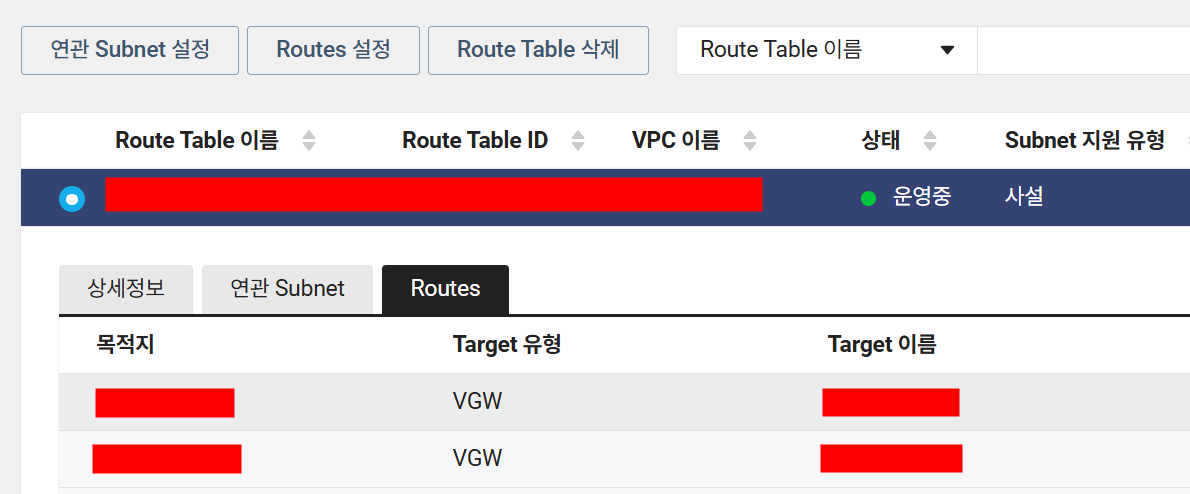 VPN을 통해서 내부망 통신을 하기 위해서는 해당 서브넷의 라우팅 테이블에 VGW로 가는 라우팅 경로를 추가해주어야 합니다.