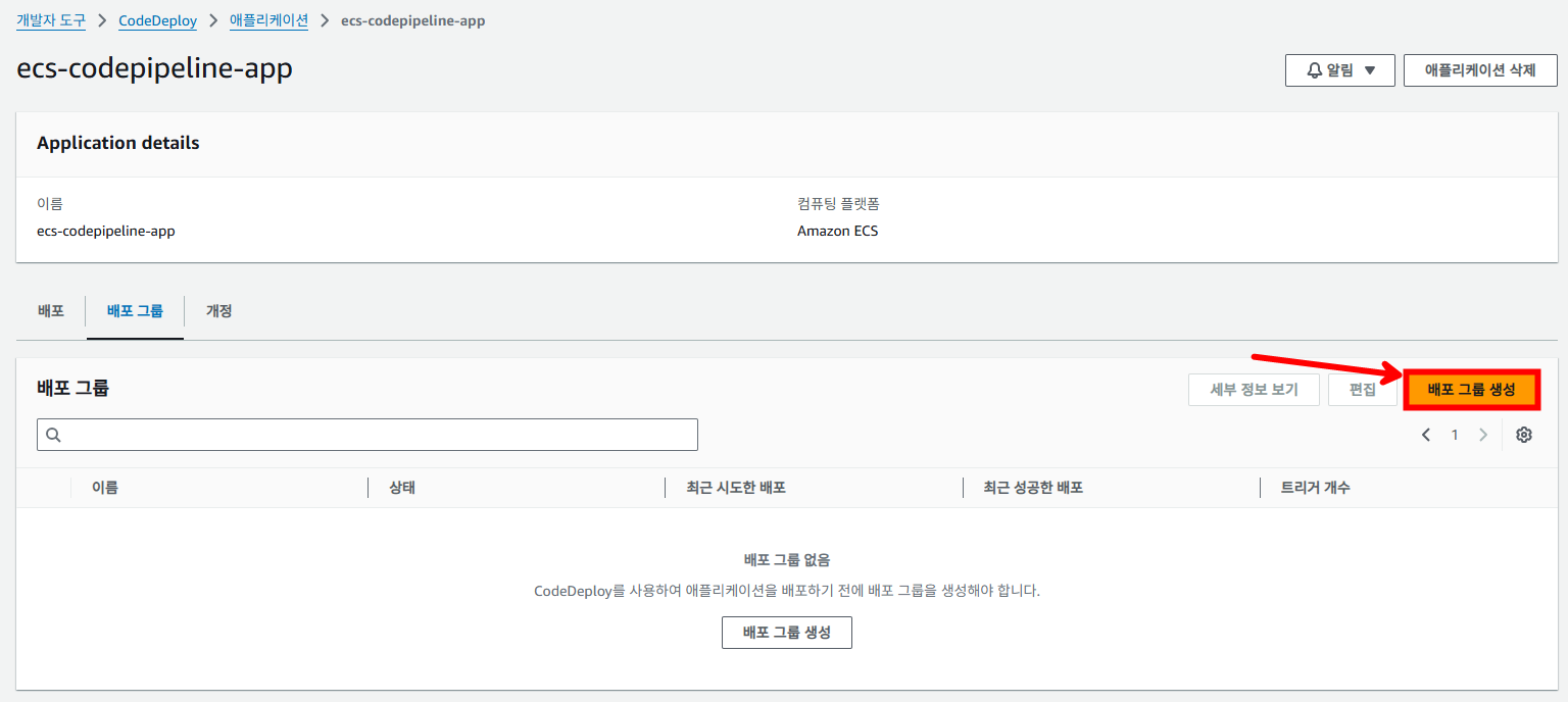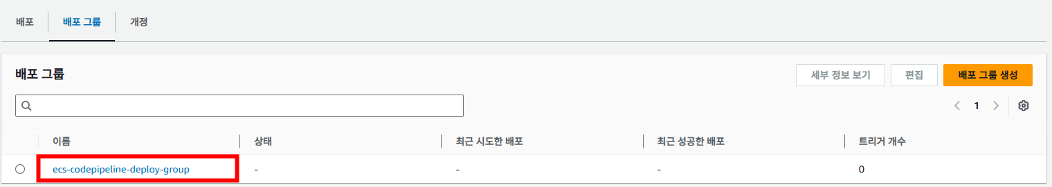 다음과 같이 배포 그룹이 정상적으로 생성되었다면 CodePipeline을 구성합니다.