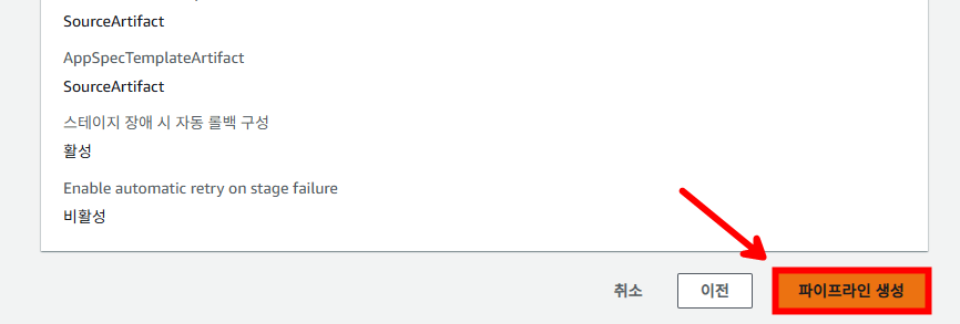 다음과 같이 설정을 진행한 후 [파이프라인 생성]을 통해 파이프라인을 생성합니다.