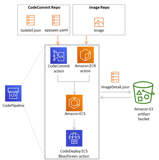 Amazon ECR에서 빌드된 이미지를 CodePipeline과 같은 서비스로 전달하기 위해 사용됩니다.
