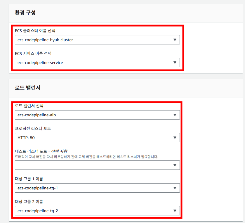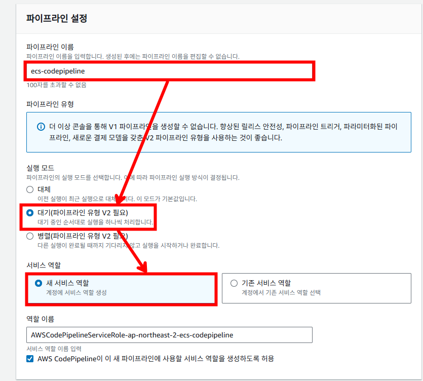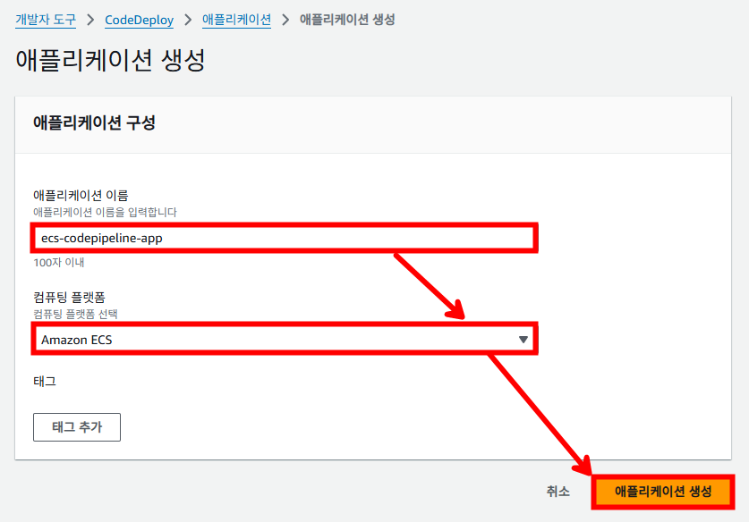 3. Amazon ECR 소스 및 CodeDeploy 배포 ECS로 파이프라인 생성