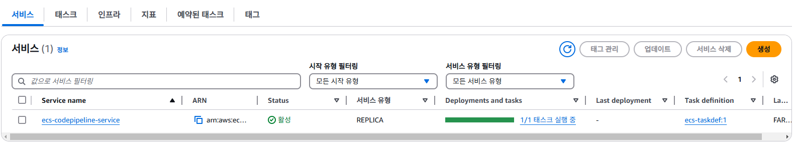 정상적으로 서비스가 생성되었다면 CodeDeploy를 구성해야 합니다.