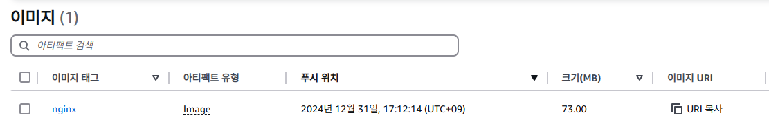위 CLI 명령어를 실행하면 다음과 같이 ECR 레포지토리가 생성됩니다.