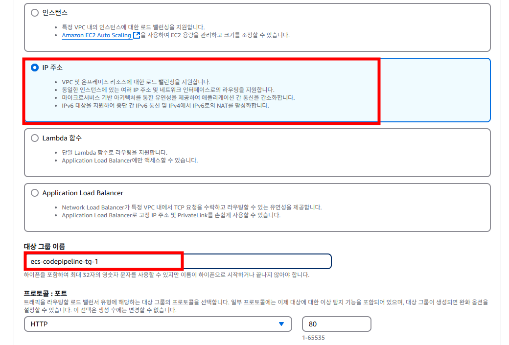 [대상 그룹 생성]을 누르고 대상 그룹을 생성합니다.