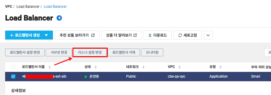 로드밸런서 - [리스너 설정 변경] 선택