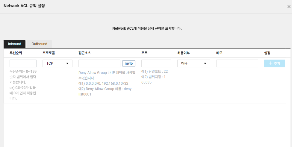 *기존 NACL과 다르게 IP 입력 갯수도 40개 -> 100개로 늘어났습니다.