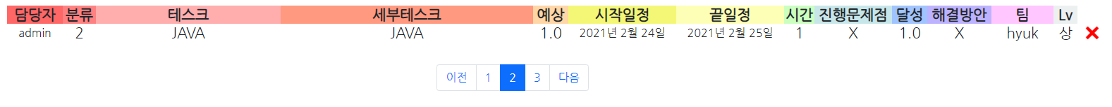 이전 실습을 진행할 때 찍어뒀던 페이징 처리 형태이지만 현재 코드에서는 한 페이지당 2개의 아이템이 나오게 끔 되어 있습니다. 코드를 실행했을 때 정상적으로 한 개의 페이지당 2개의 아이템이 나오는 것을 확인할 수 있습니다.