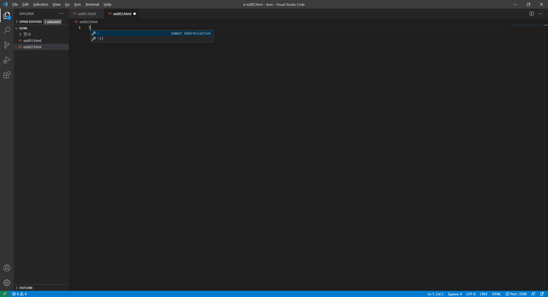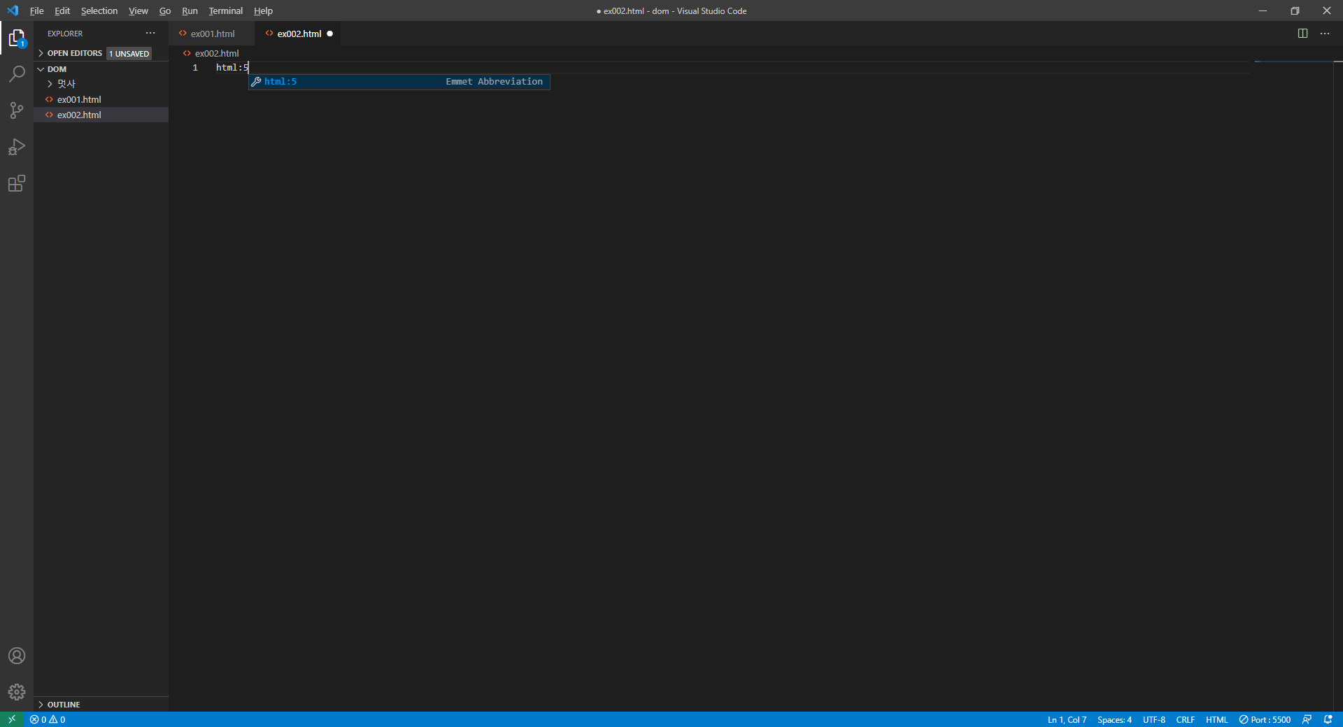 다음과 같이 코드를 작성한 후에 Live Server를 눌러서 미리보기로 확인해보겠습니다!