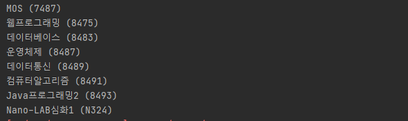 이렇게 학사 홈페이지에서 강의목록을 가져와서 출력할 수 있고 정보를 더 가져와서