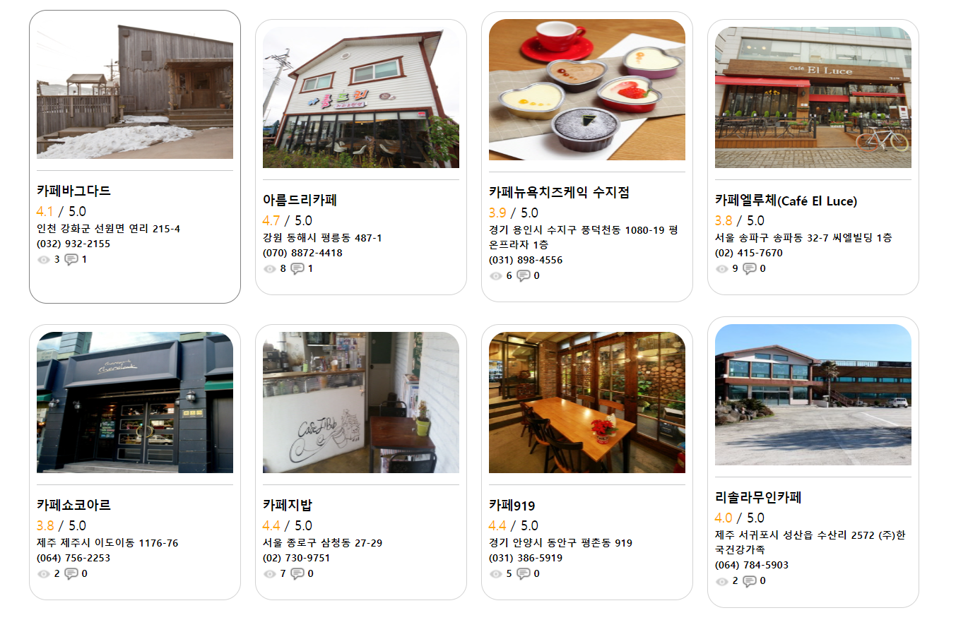 이렇게 크롤링된 데이터를 DB에 저장해 필터링하여 카페 추천 사이트 프로젝트에 적용할 수 있었다.
