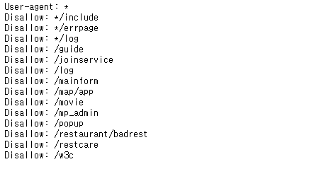 Disallow로 표시되어 있는 부분이 크롤링 범위에 제한을 두는 곳이고 탐색하지 말라는 뜻입니다.