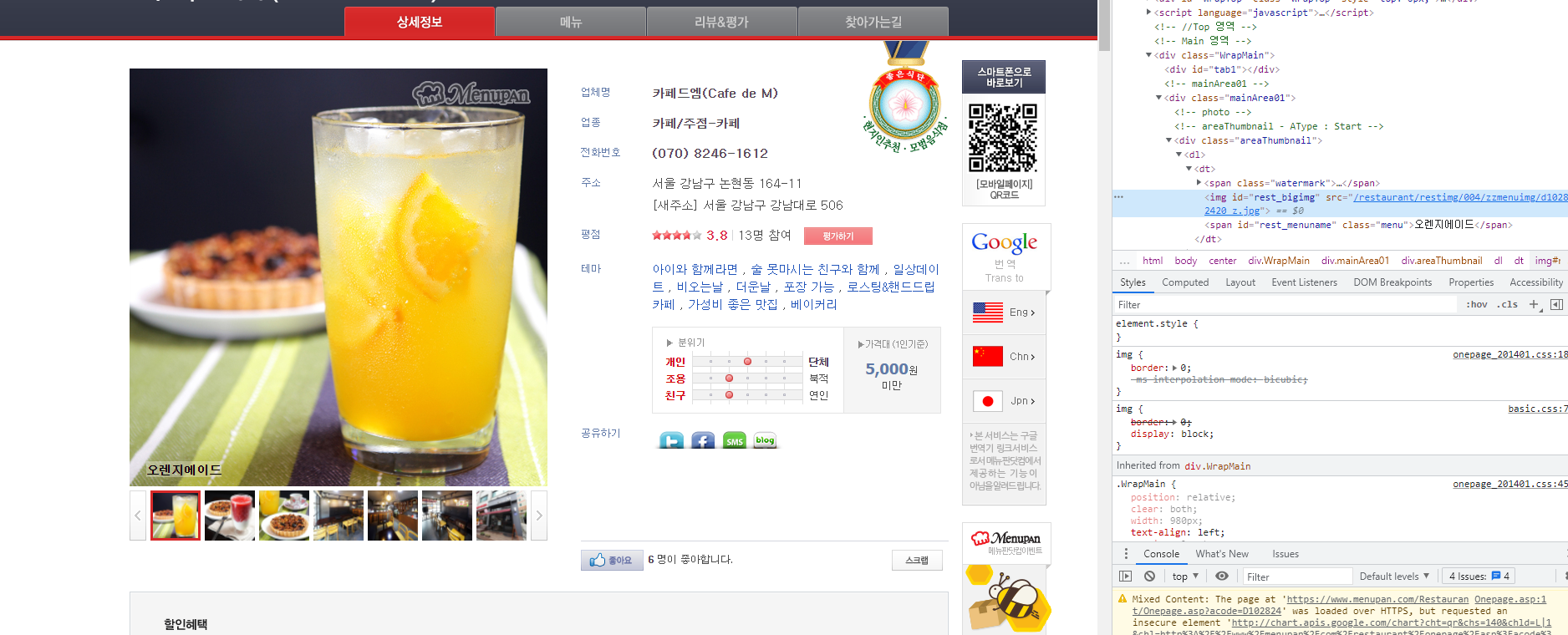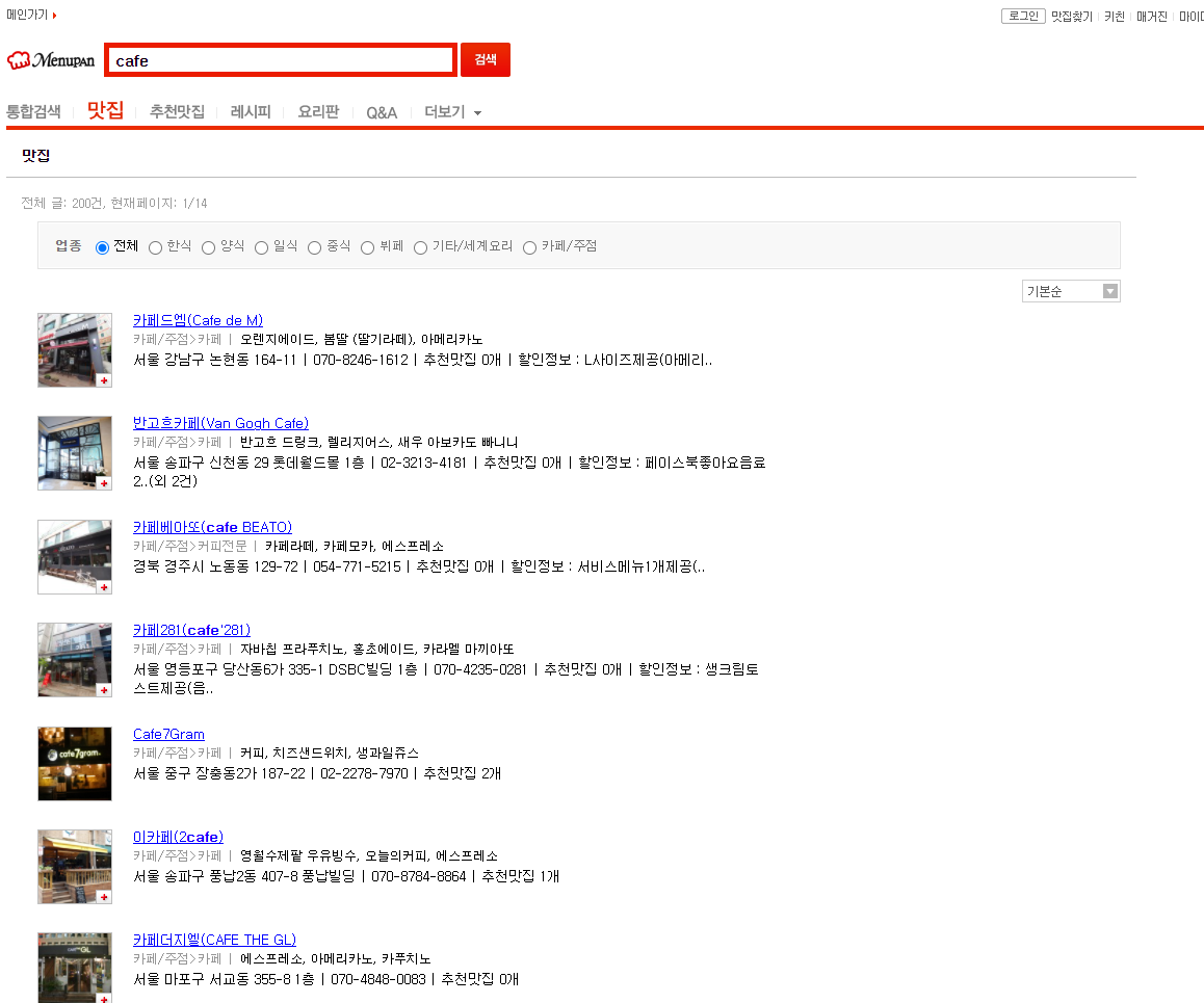 다음과 같은 사이트에서 카페를 클릭하여 카페의 디테일한 정보를 뽑아올 때 사용하면 좋습니다.